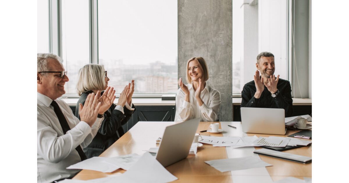 視線は一人を見続けず、全体をゆっくり見渡すことで落ち着いた印象になります。