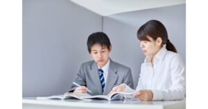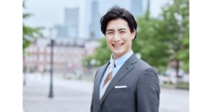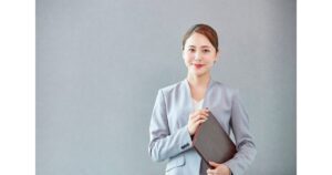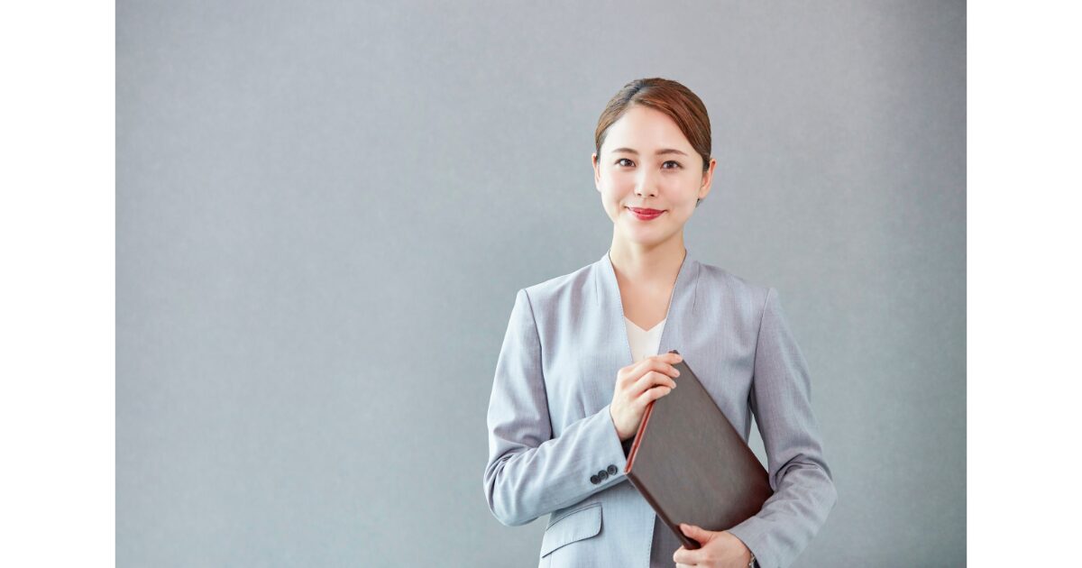 写真では肩のラインを整え、少し斜めを向くことで堅さを和らげるのがポイントです。